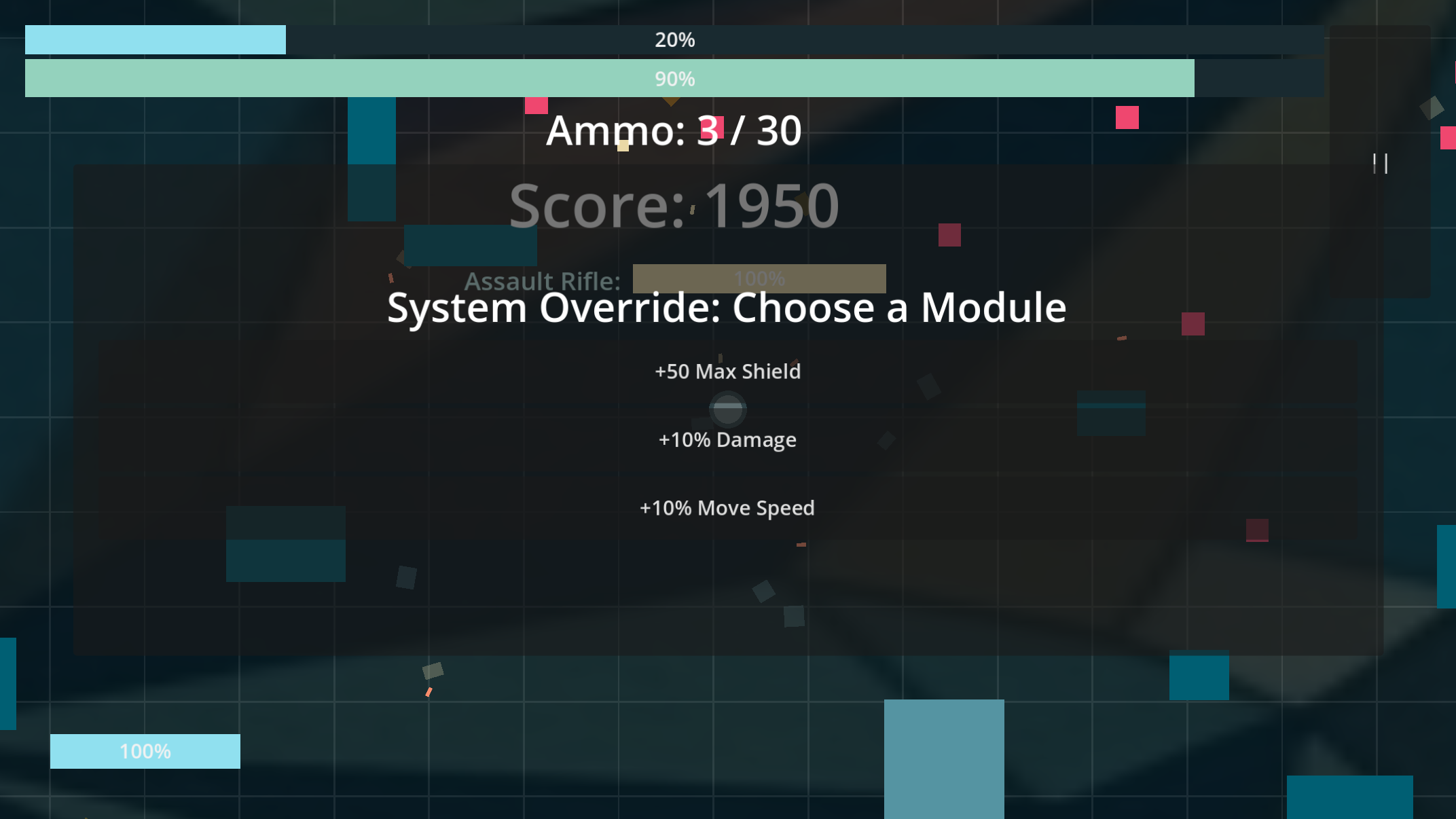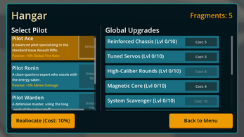 Survive endless waves of hostile programs in a chaotic digital arena. Evolve on the fly with powerful in-run upgrades, collect Data Fragments from your fallen enemies, and use them in the Hangar to upgrade your core code permanently.